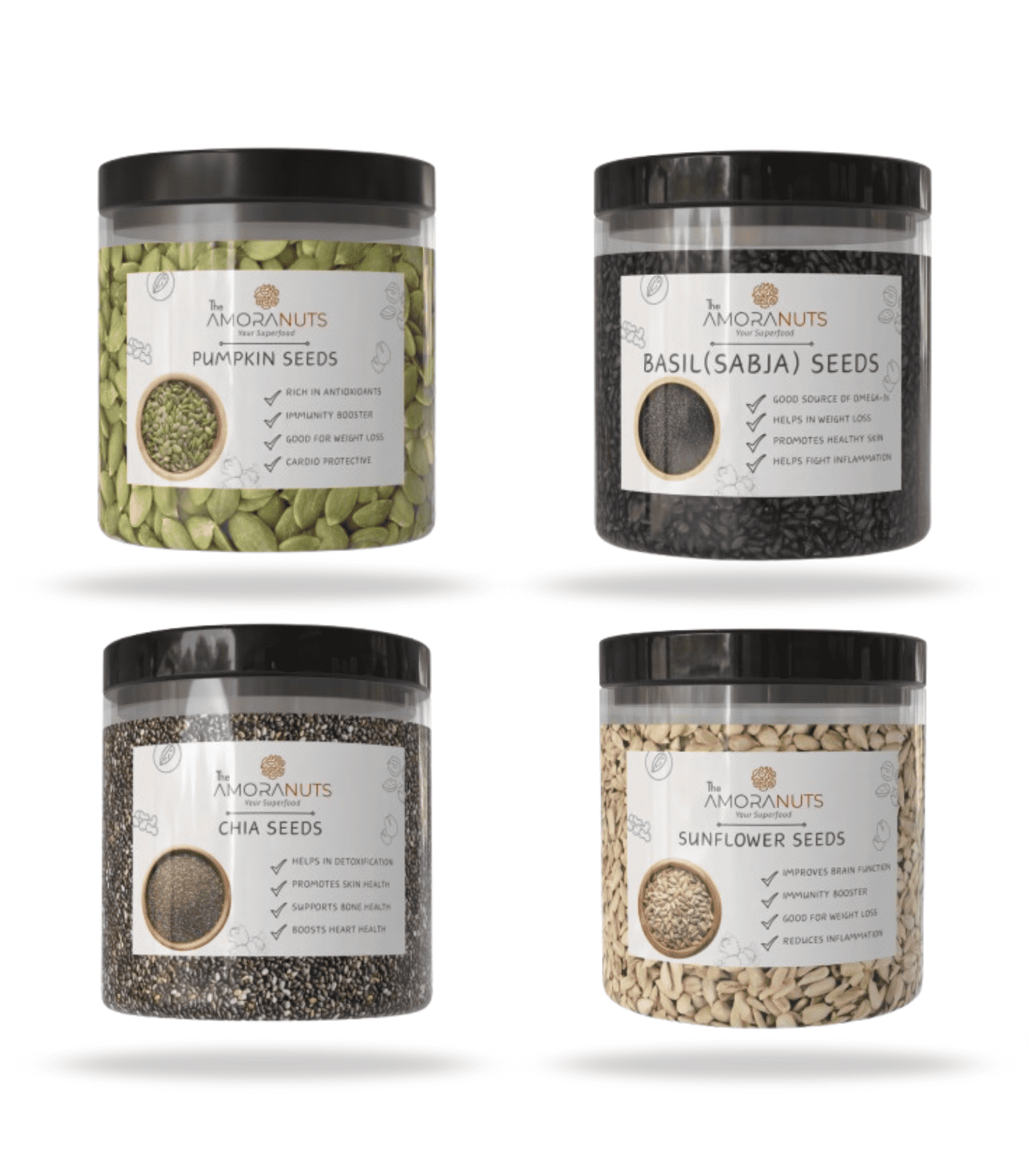 Boost your nutrition with our premium Seeds Combo Pack, featuring four superfood seeds that are perfect for daily health: pumpkin seeds, sunflower seeds, chia seeds, and flax seeds. Packed with essential nutrients, these seeds are a powerhouse of protein, fiber, omega-3 fatty acids, vitamins, and minerals, making them an ideal addition to a balanced diet.